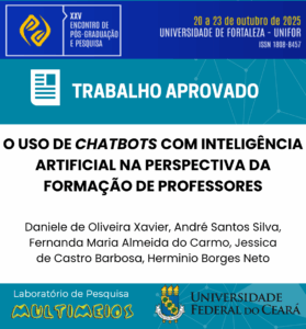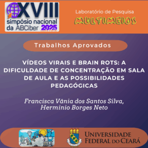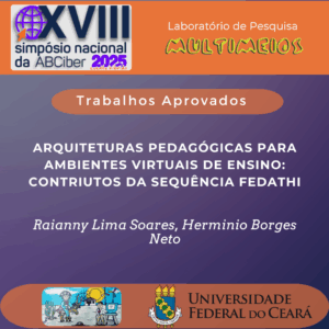 Quatro trabalhos foram aprovados e serão apresentados no XVIII Simpósio Nacional da ABCiber 2025, evento que acontecerá em São Paulo e no formato híbrido. Nossos trabalhos envolvem a temática de EaD, com destaque para fórum, chatbot de IA, arquiteturas de Ambientes Virtuais de Ensino (AVE) e vídeos virais.