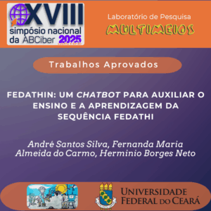 Tivemos um trabalho aprovado nos Encontros Científicos 2025 da UNIFOR. Nele, escrevemos brevemente sobre nossa exploração de uso de diversos chatbots nos últimos três anos e apresentamos um esboço do nosso chatbot Fedathin.