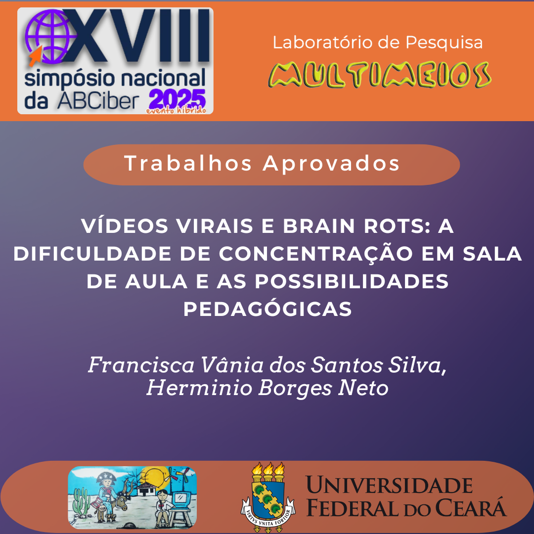 Quatro trabalhos foram aprovados e serão apresentados no XVIII Simpósio Nacional da ABCiber 2025, evento que acontecerá em São Paulo e no formato híbrido. Nossos trabalhos envolvem a temática de EaD, com destaque para fórum, chatbot de IA, arquiteturas de Ambientes Virtuais de Ensino (AVE) e vídeos virais.