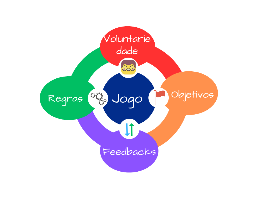 🕹️ Com essas quatro “peças-chave”, já dá para transformar qualquer atividade em algo mais envolvente, divertido e educativo! Esses elementos básicos são ilustrados na figura que segue.