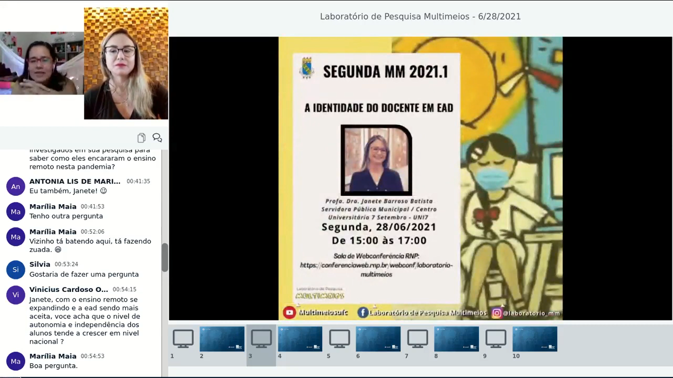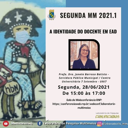 A Segunda MM, recebeu no dia 28/06/2021 a Profa. Janete Batista para conversar sobre “A identidade do docente em EaD”. Você não pode perder, foi na comunidade do Laboratório de Pesquisa Multimeios na RNP. Confere lá!